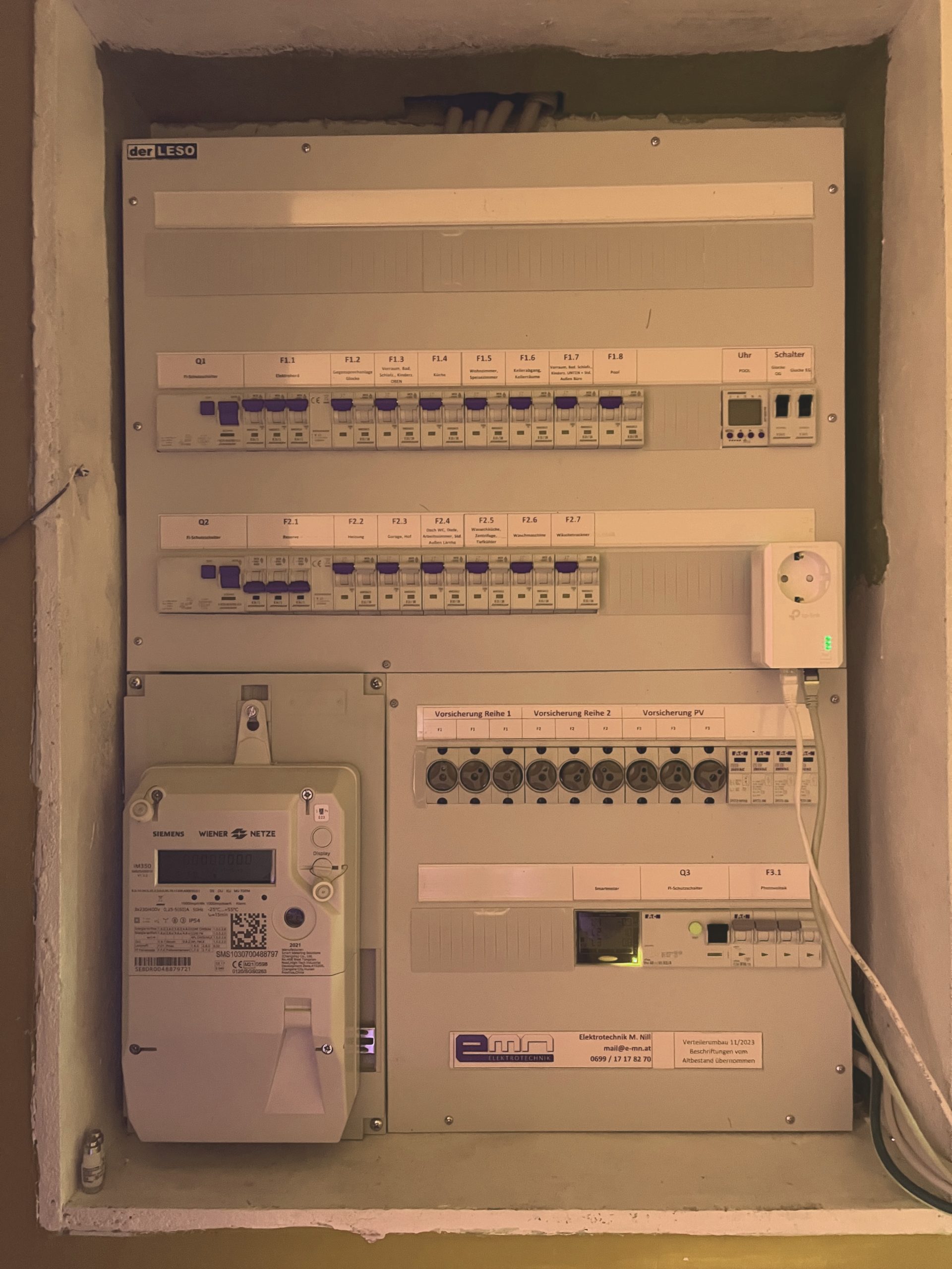 Projekte Ein Bild sagt mehr als 1000 Worte….In dieser Rubrik finden Sie einen kleinen Auszug von Projekten, die wir in letzter Zeit umgesetzt haben. Austausch gesamte Verteileranlage in einem Restaurant 1070 Wien Jän. 2024 Prov. Notbetrieb Kühlungen3 Tage BauzeitStromkreiszuordnungen Umbau auf KNX-SystemMiniserver KNXBedienung über Handy-App Dimmfunktion für BeleuchtungenAnlagenüberprüfung Elektroinstallation für Hackschnitzelheizung in Bestandsgebäude 2291 Lassee Nov. 2023 VerteileranlageVerkabelungenAufputzinstallationen ElektroanschlüsseAnlagenüberprüfung Verteiler PumpenVerteiler HeizhausHeizhausHeizhausPrüfprotokollMessungen Austausch Verteileranlage Einfamilienhaus 2345 Brunn am Gebirge Nov. 2023 Austausch ges. VerteileranlageEinbinden PV-Anlage in Bestand Überprüfen der VerteileranlagePrüfdokumentation Altbestand 1Altbestand 2UmbauphaseVerteiler Neu Generalsanierung Haussprechanlage 1190 Wien Okt. 2023 betriebssicheres BussystemVideofunktionCodelockSonderbau in bestehendes Portal Umschaltung zwischen mehreren TortableausVideoinnenstellenRufweiterleitung auf Handy Altbestand HaupteingangAltbestand GebäudeNeuanlage HaupteingangNeuanlage Gebäude Generalsanierung Haussprechanlage 1130 Wien Sep. 2023 betriebssicheres BUS-SystemVideofunktionRFID-Zutrittskontrolle VideoinnenstellenRufweiterleitung auf Handy AltbestandAussenansichtTortableau Neu Austausch Verteileranlage 1230 Wien Jun. 2023 Austausch VerteilereinbautenMängelbehebungen PrüfdokumentationElektrobefund AltbestandAltbestandVerteiler NeuBeschriftungPrüfbefundPrüfbefundMessungen